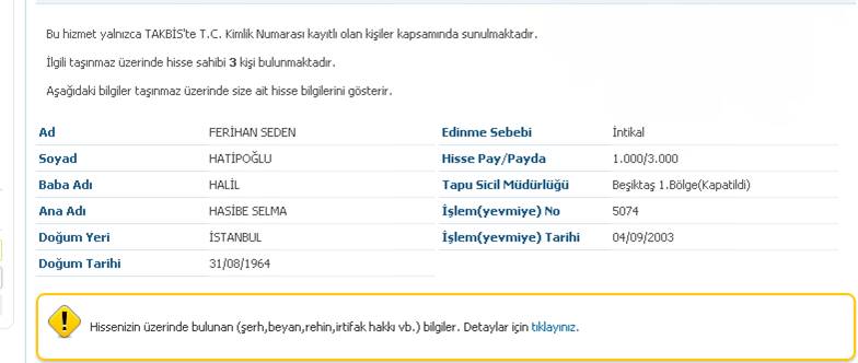 Sedene ait olan hisseninbilgisi