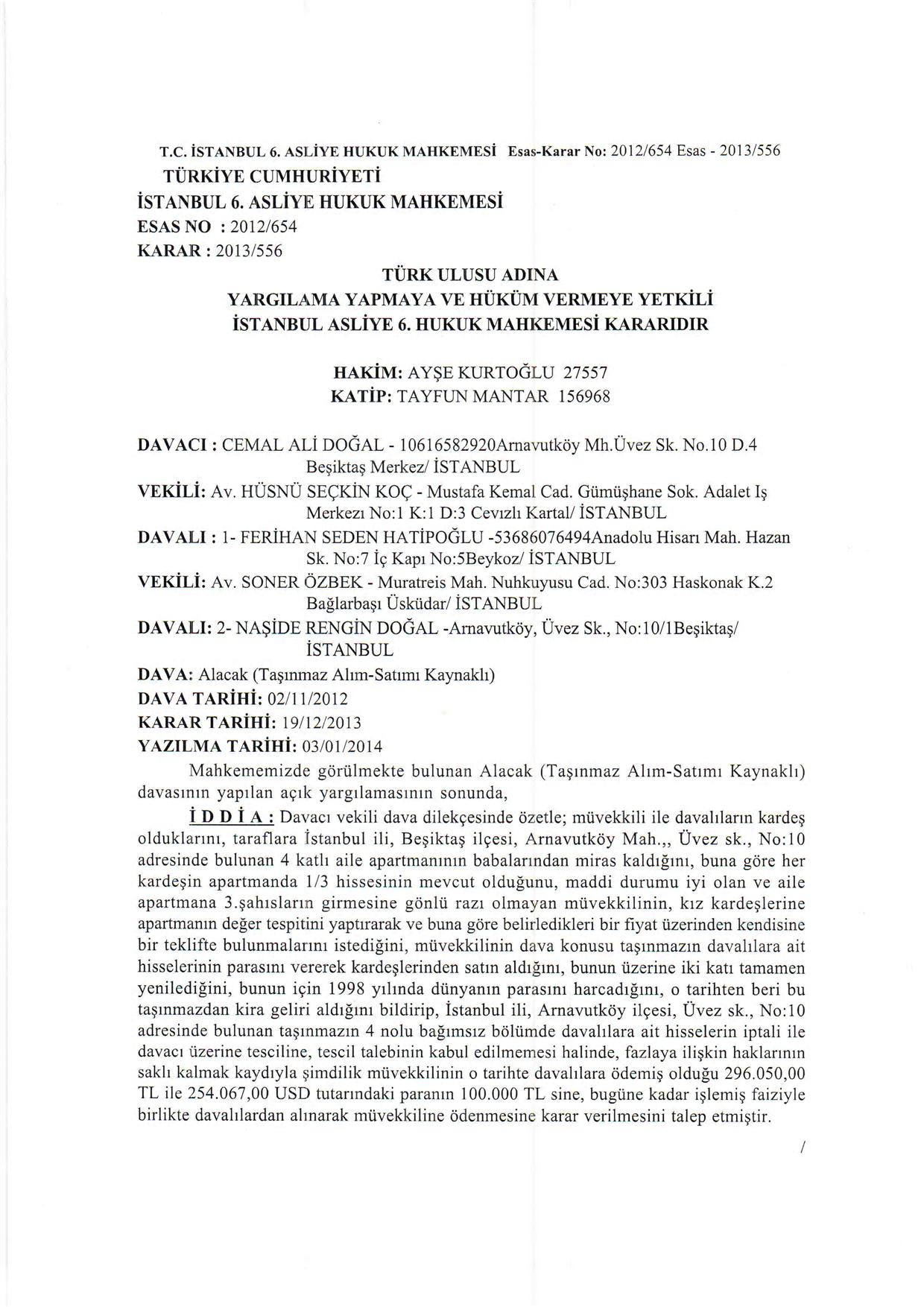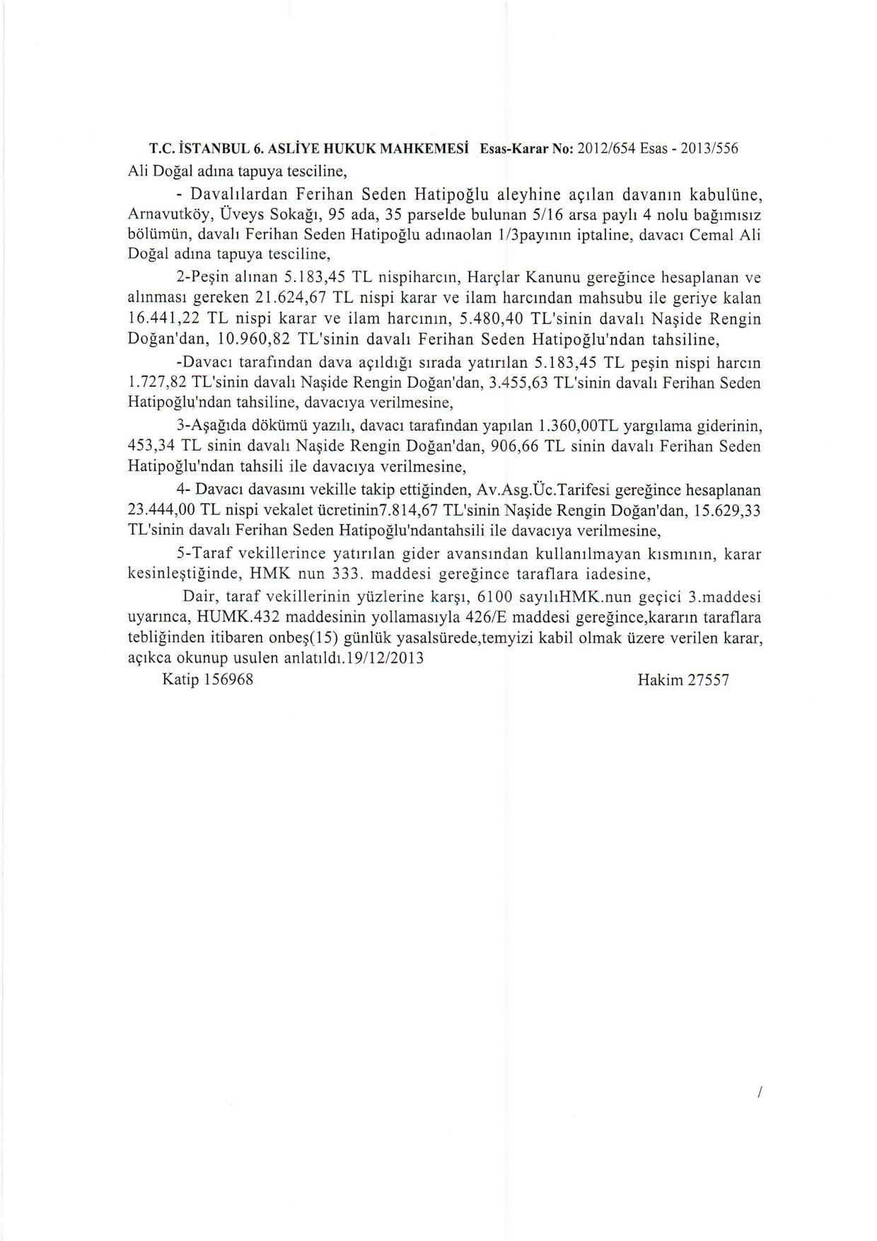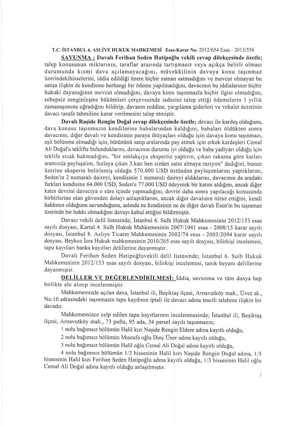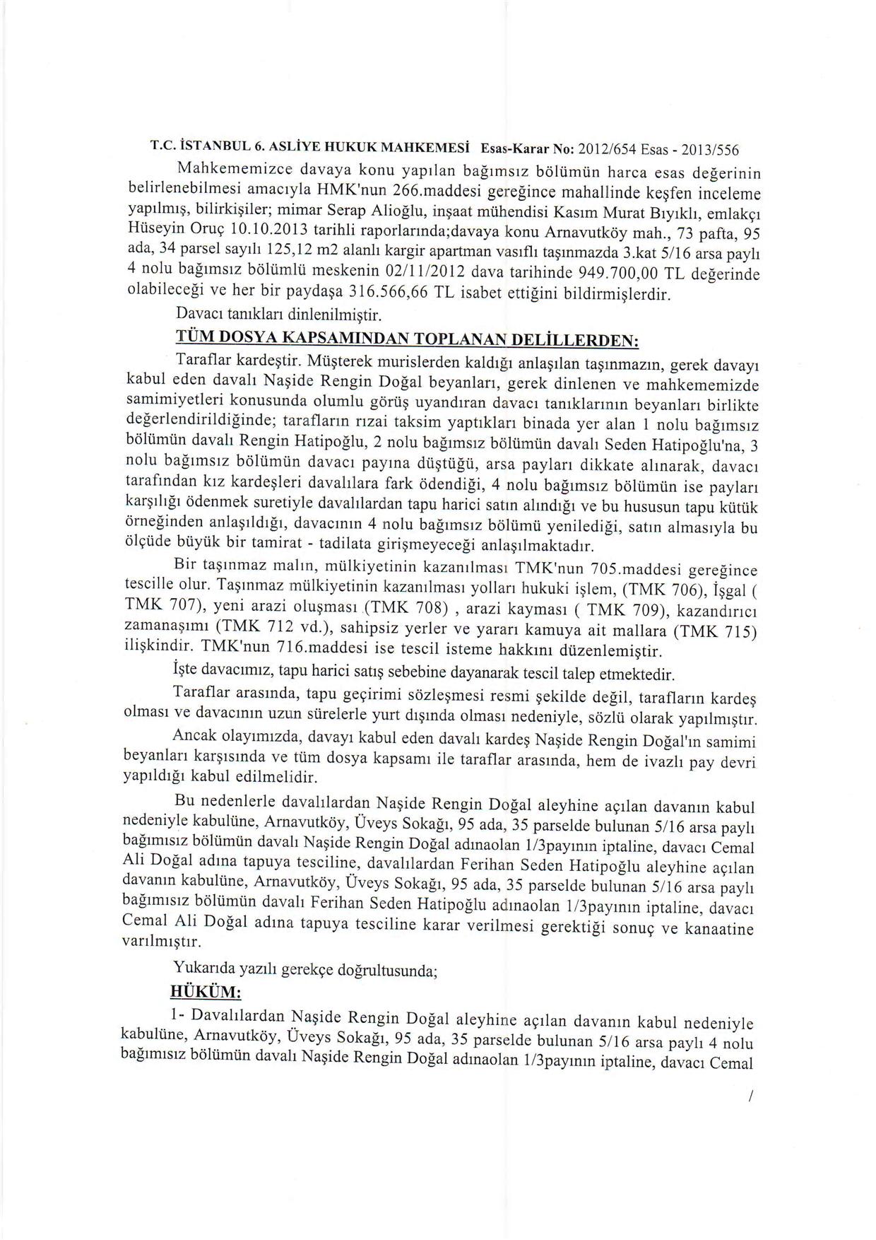 İstanbul 6. Asliye Hukuk Mahkeme'sinde (2012/654 E.) kaybettiğimiz davanın Gerekçeli Kararı...