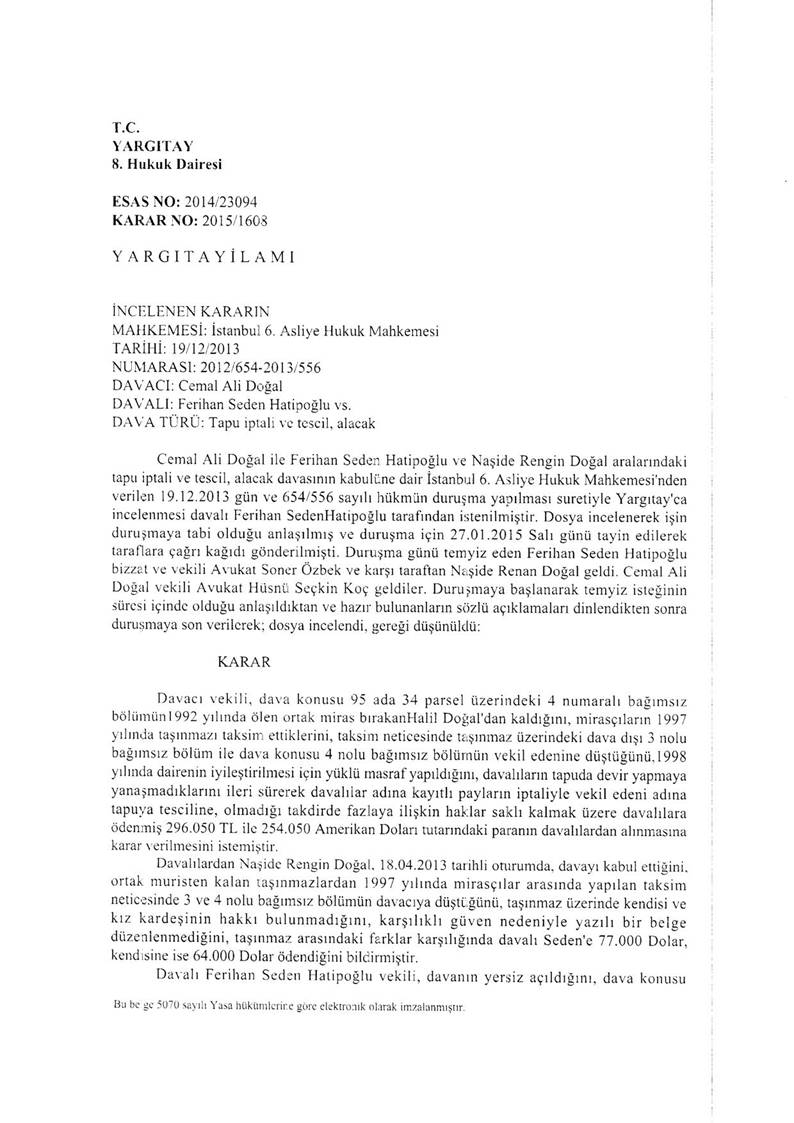 Yukarıdaki davanın (2012/654 E.) Yargıtay 8. Hukuk Dairesi'nin Yargıtay İlamı